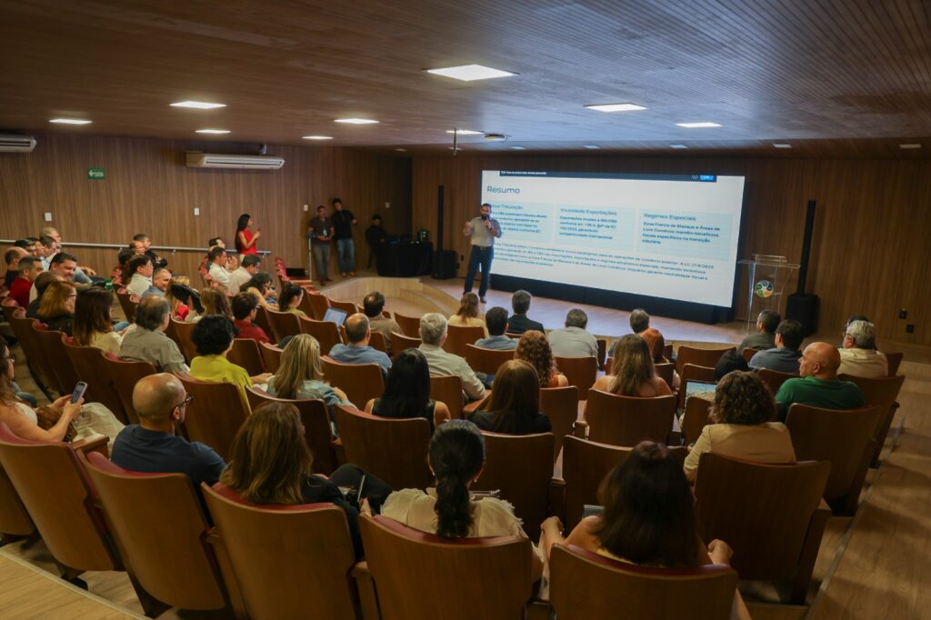 A abertura do evento, programada para às 9 horas, foi realizada pelo auditor fiscal João Arlindo Prado Gusmão, que faz parte da Gerência de Auditoria das Operações com o Comércio Exterior/Suframa. Em sua fala, ele esclareceu que a reforma no comércio internacional continuará respeitando o princípio do destino, assegurando a neutralidade tributária. Assim, as importações estarão sujeitas a alíquotas cheias entre 2026 e 2032, enquanto as exportações permanecerão isentas do IBS e da CBS.